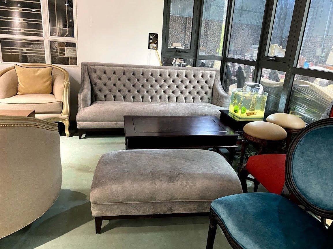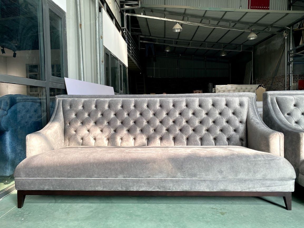 BỘ SOFA TÂN CỔ GREY - BỆ CHÂN GỖ SƠN MÀU ĐEN